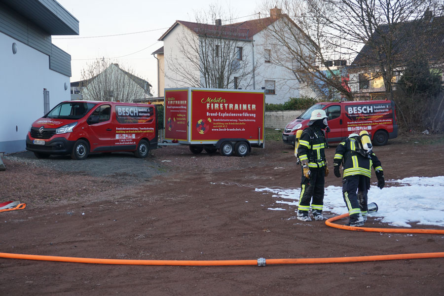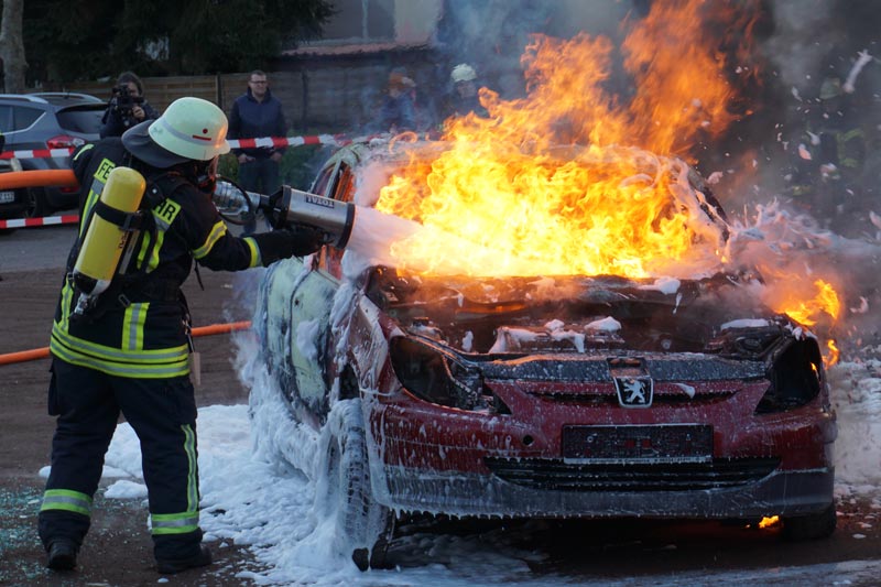 Vorführung von Fettbrandexplosionen, Spraydosenexplosionen, Fahrzeugexplosion bei Feuerwehren
